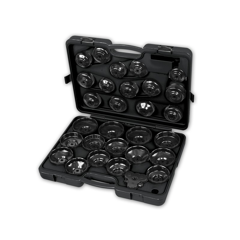 Juego de 28 llaves de vaso para filtros de aceite.