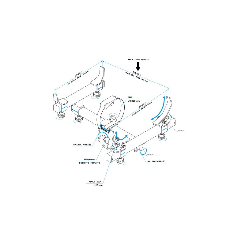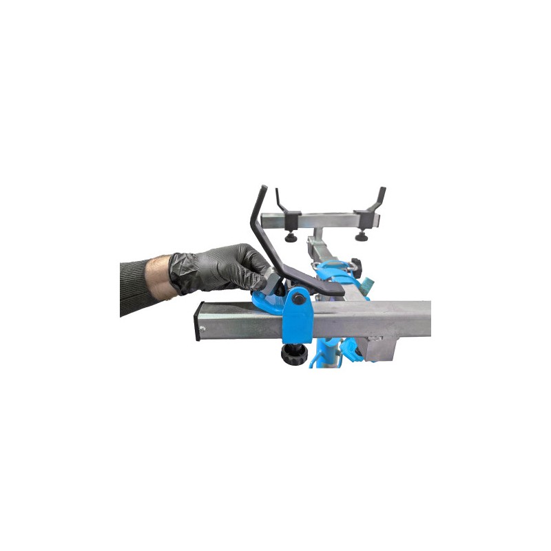 Los soportes y los brazos delanteros y traseros, que se pueden ajustar en distancia y ángulo de inclinación, proporcionan una sujeción segura durante la aplicación y la extracción.