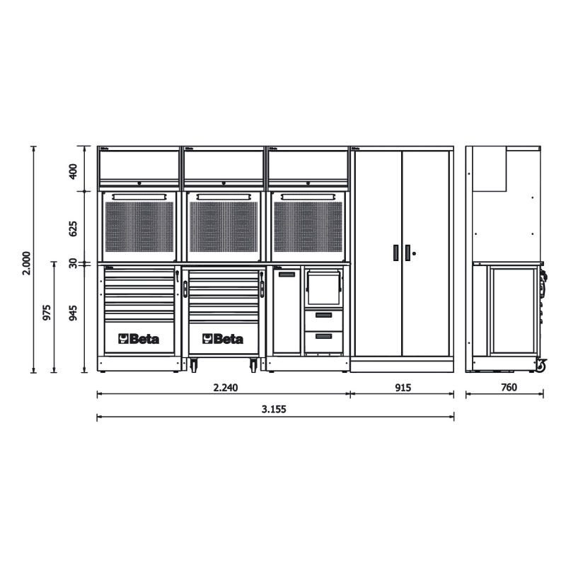 - Encimera de 2.240x700 mm de chapa pintada recubierta con una capa de pvc antichoque (RSC50 2.0 PX/3-2.2MT)