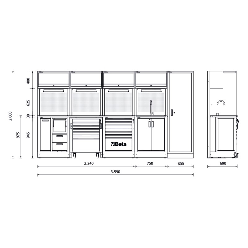 • 1 módulo fijo auxiliar con 2 cajones (RSC50 MS-2C)