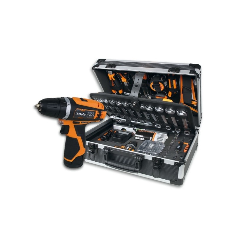 Maleta porta-herramientas con surtido de 147 herramientas para el mantenimiento general y taladro atornillador 12 V