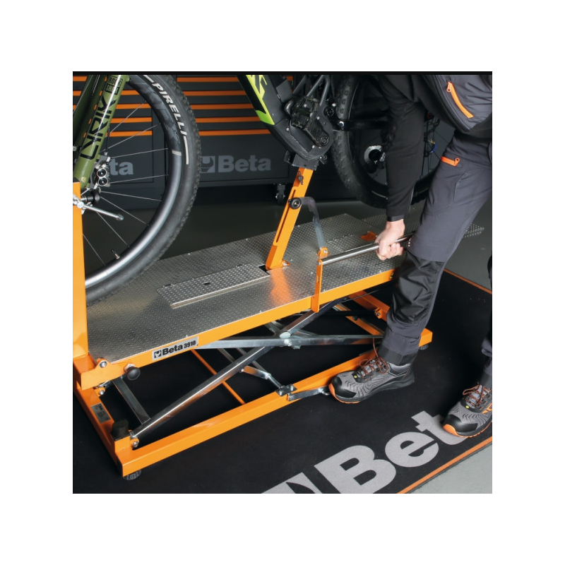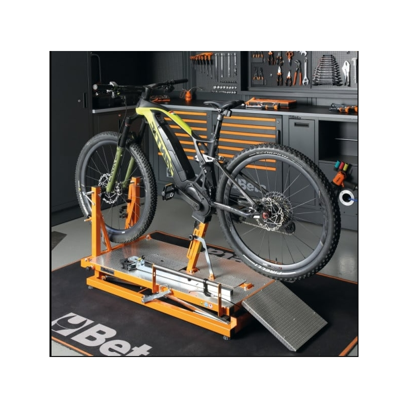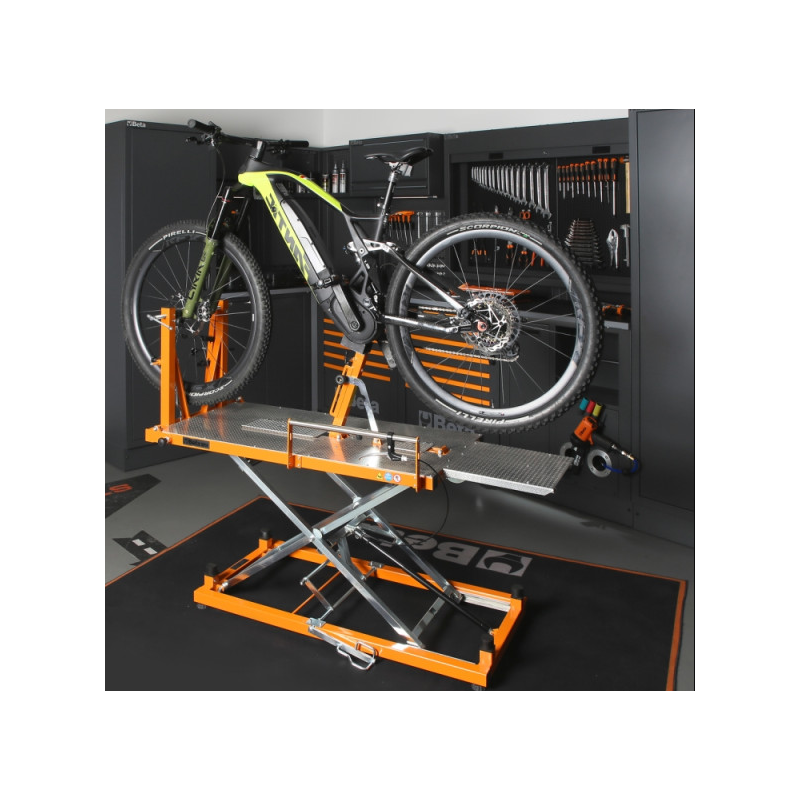 El caballete de reparación para e-bike Beta se ha diseñado para todos los talleres que en su plan de mantenimiento tienen un elevado número de bicicletas con un peso elevado.